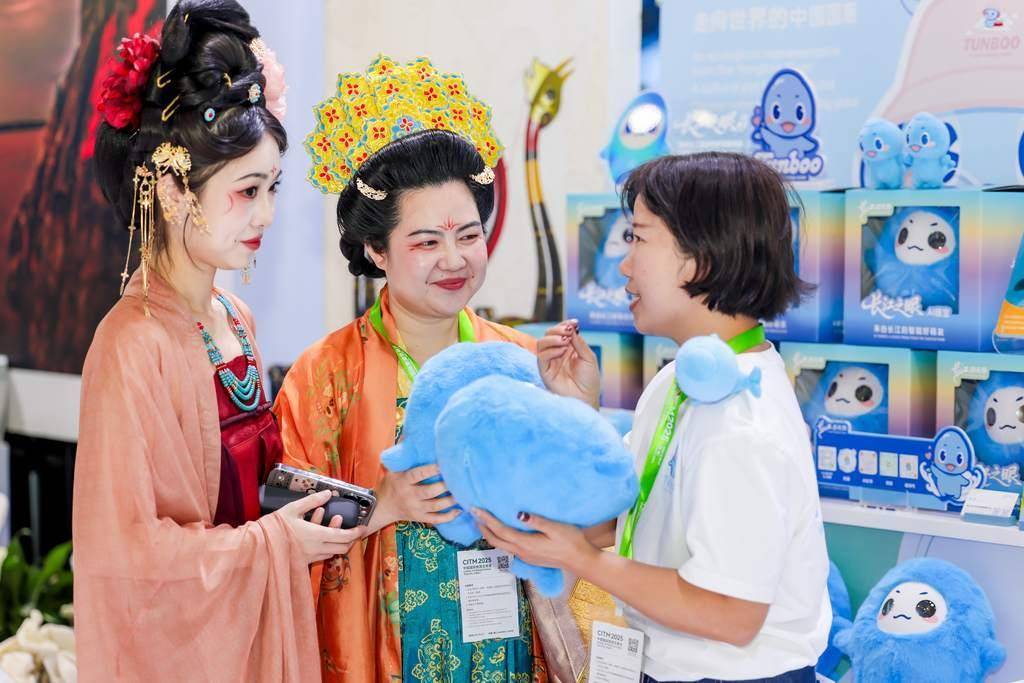 三家来自长江沿岸的文创礼物也来到了湖北展区。“荆州礼物”带来了等比例缩小的虎座鸟架鼓等以馆藏文物为原型的文创产品;“长江礼物”江豚IP豚宝活泼可爱,引得游客争相合影,更有江豚主题咖啡水吧,让观众在醇香中品味长江文化;光谷文创科技感与艺术感兼备的空轨模型展现着湖北文旅融合中面向未来的创新活力。