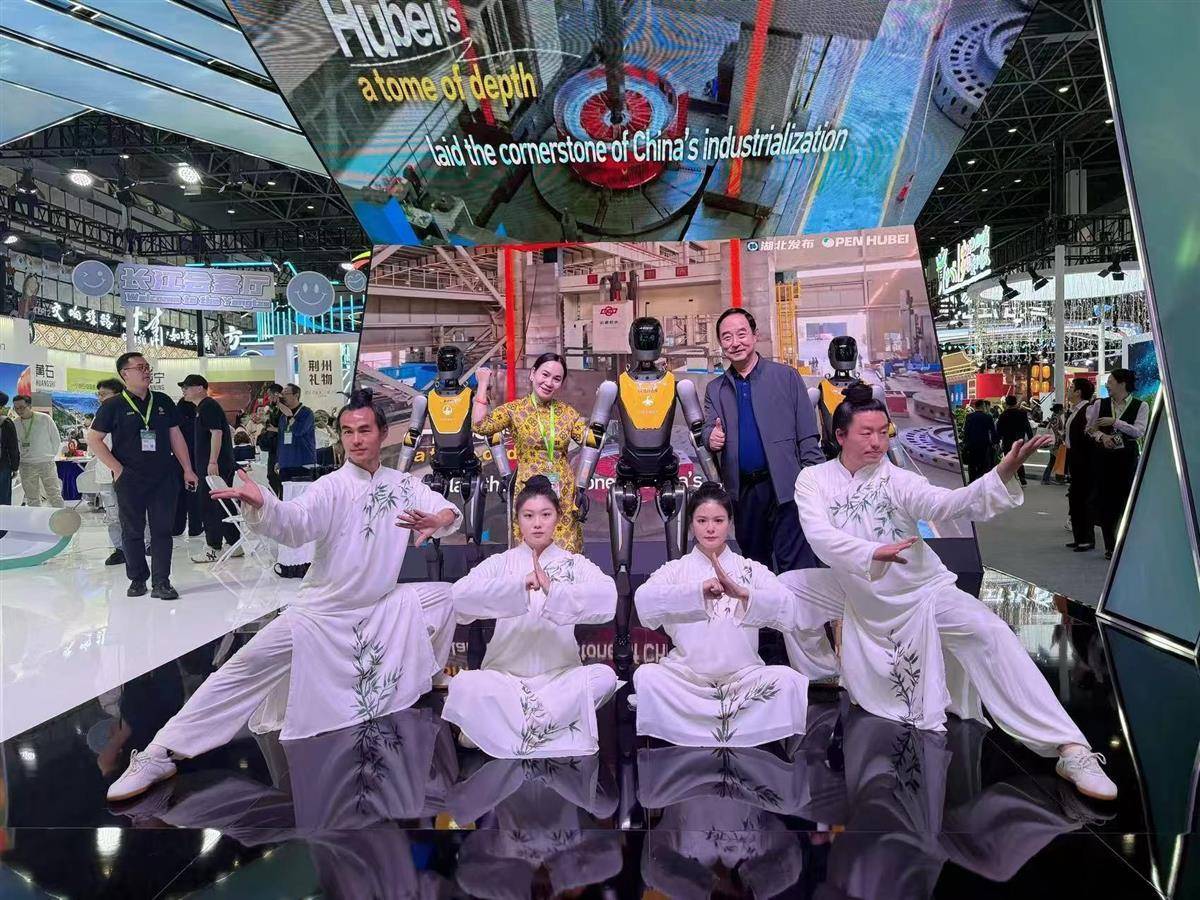 走进湖北馆,一场跨越时空的对话正在上演。舞台区中央,来自武当山的太极传人正以行云流水之势演绎传统太极拳法,而其身后,来自武汉光谷东智的“光子”人形机器人团队正同步展示精妙的太极动作。这款身高1.7米、拥有40个自由度的智能机器人,凭借高精度传感系统,不仅能够以人类步行速度稳健行走,更能精准复现太极的每一个招式。