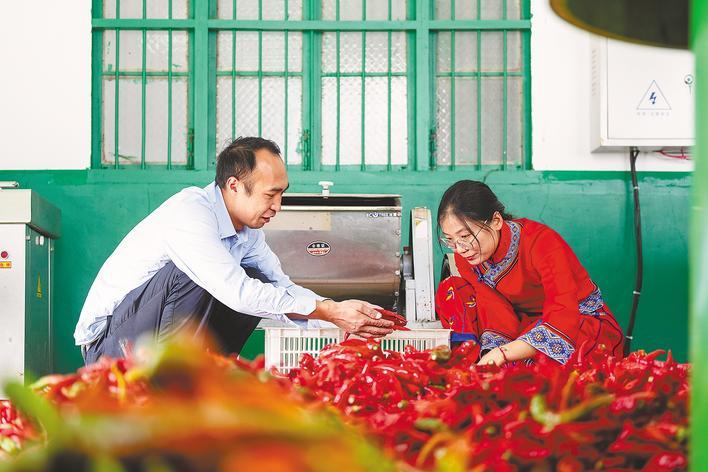 田太首(左)和王菲菲在处理辣椒。 (湖北日报全媒记者 夏晓君 摄)