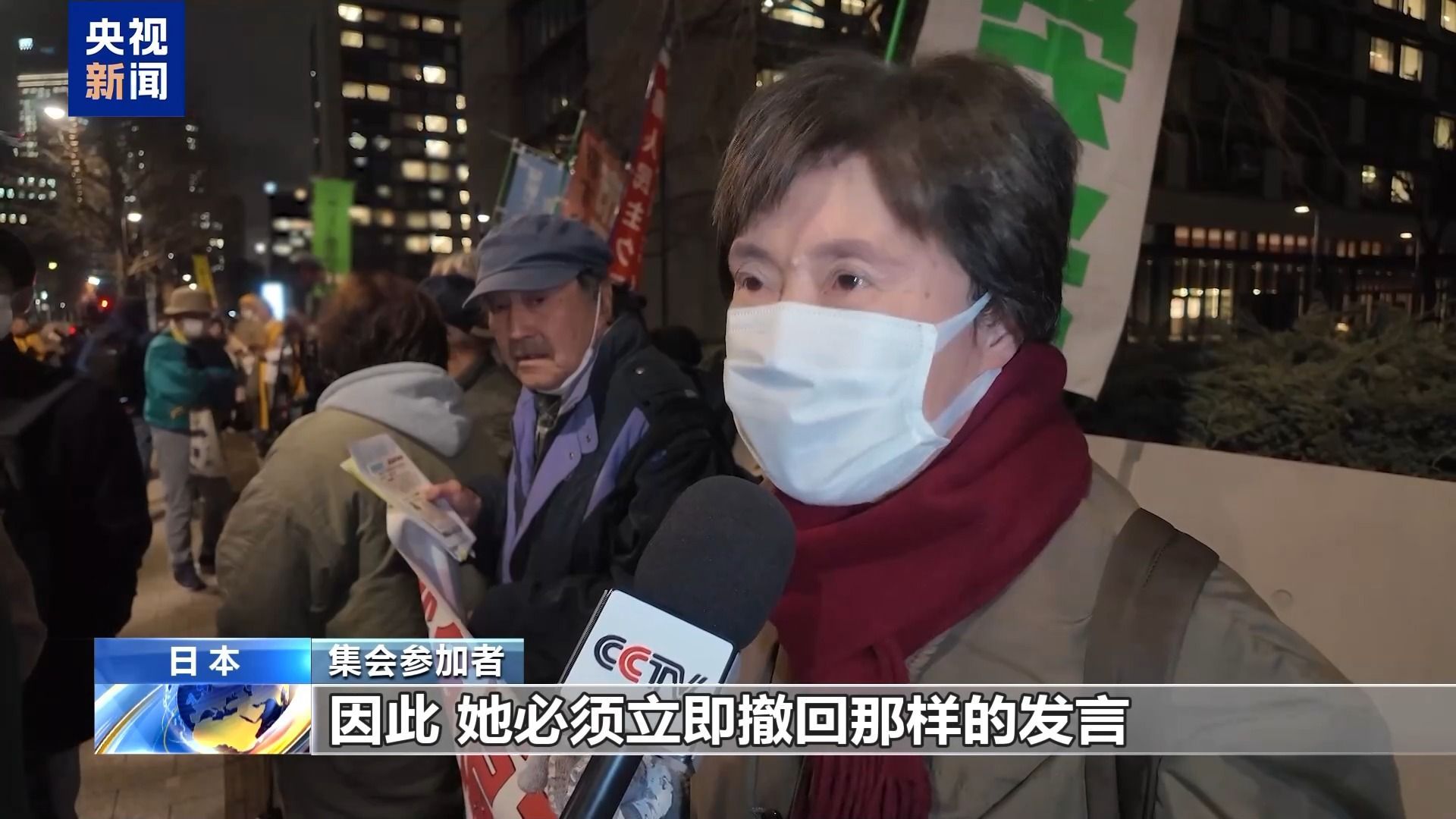 日本首相高市早苗的涉台错误言论引发日本国内持续批评。19日,部分日本民众在东京举行抗议集会,要求高市立即撤回错误言论,停止制造紧张局势。