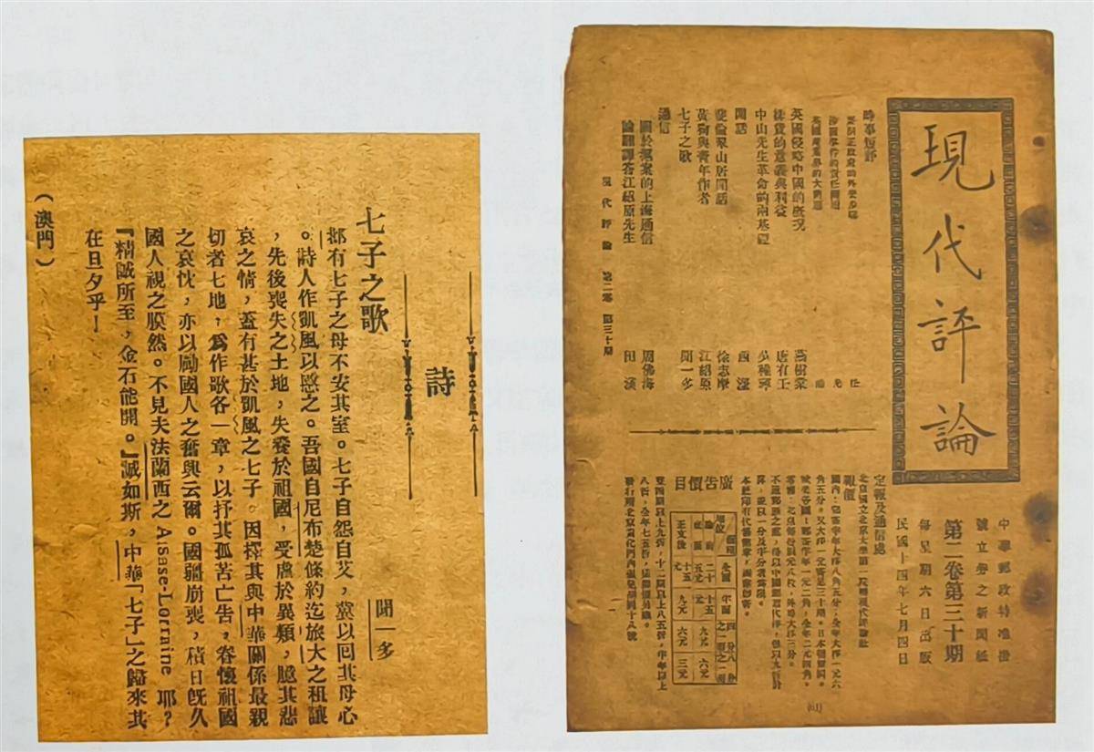 1925年7月4日《七子之歌》首次发表在《现代评论》上。