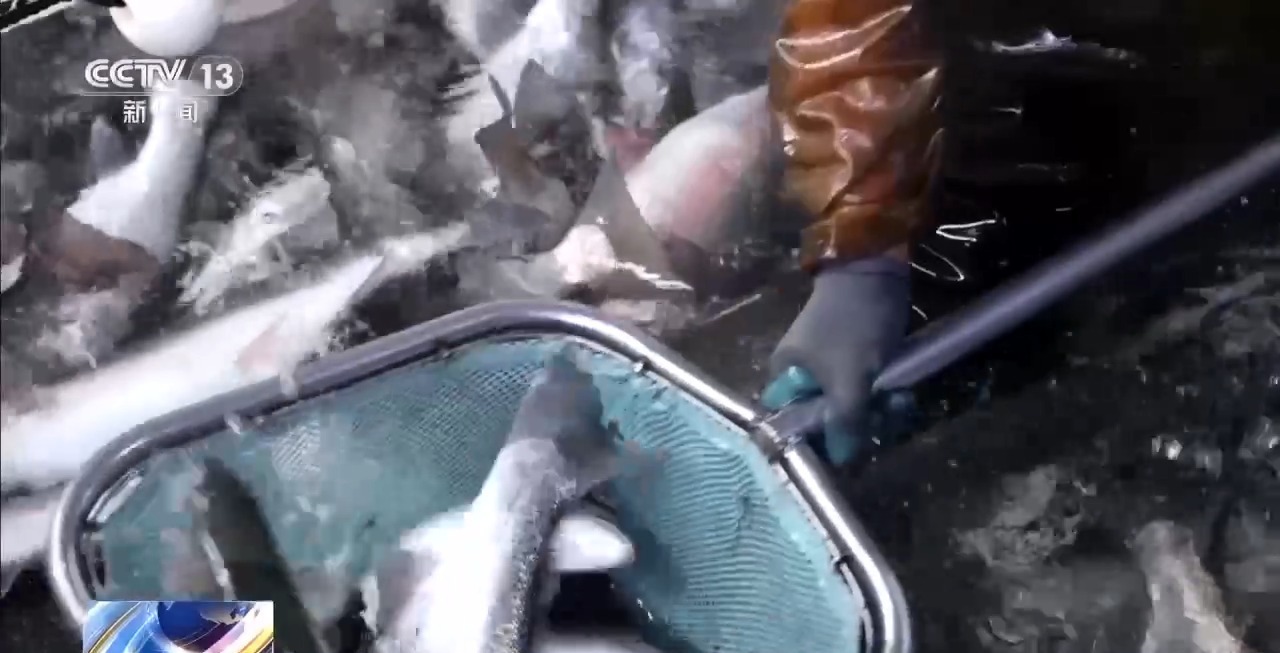 看似简单的三文鱼“搬家”,却藏着不少技术含量。不仅要提前对鱼儿进行低温驯化,让它们慢慢适应环境,还要给它们用一种可代谢的专用麻醉剂进行轻微镇静,减少它们的应激反应。当然,在运输过程中,也不能掉以轻心。“要全程监控、全程定位,每隔两小时检查一次。路上一定要注意水温、溶氧、鱼的活力。”三文鱼苗运输负责人孔德超介绍。