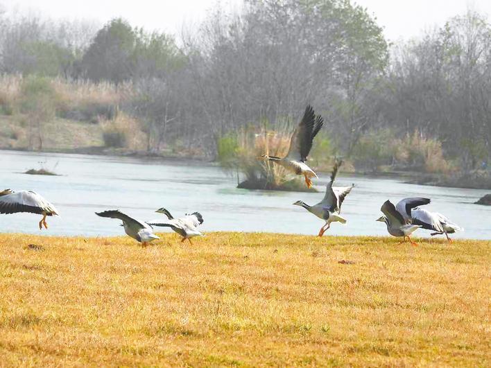 “高原精灵”斑头雁首现襄阳。(湖北日报通讯员 齐彭彭 摄)
