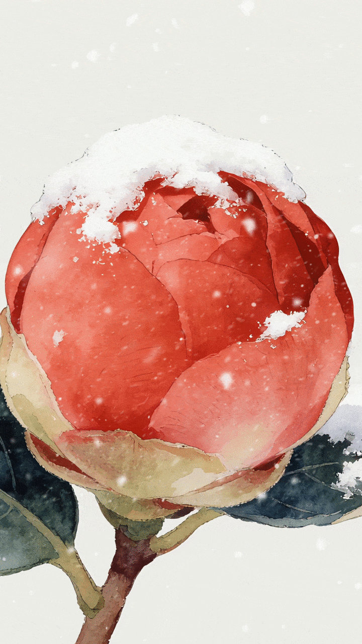 “好在朱朱兼白白,一天飞雪映山茶。”