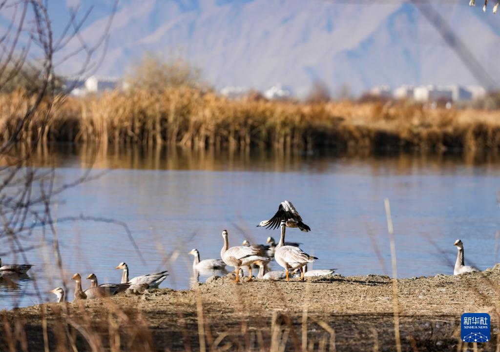 12月20日,斑头雁在拉鲁湿地休憩。