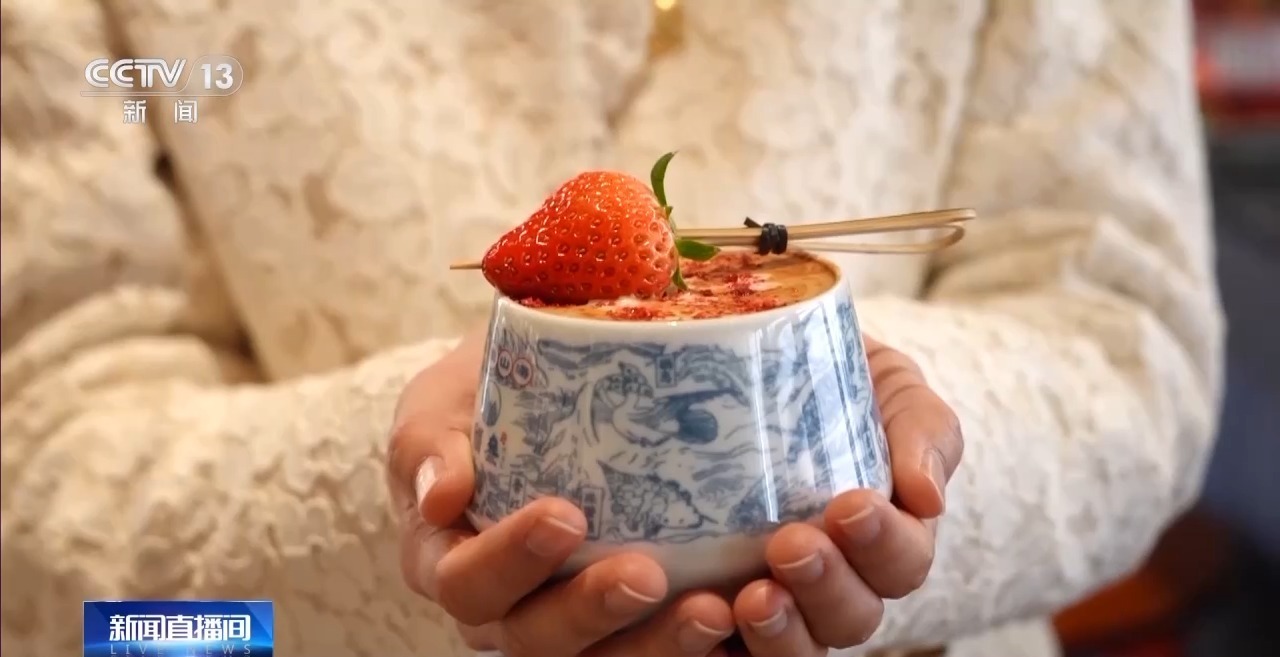 产自本村的草莓,经过清洗后,用竹签串起草莓,摇身一变就成了草莓拿铁里的“主角”,当然,这款咖啡也是辛庄村的限定产品。