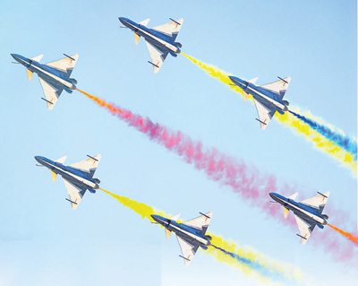 第十一届空军航空开放活动和长春航空展上,空军八一飞行表演队进行飞行表演。邹新江摄