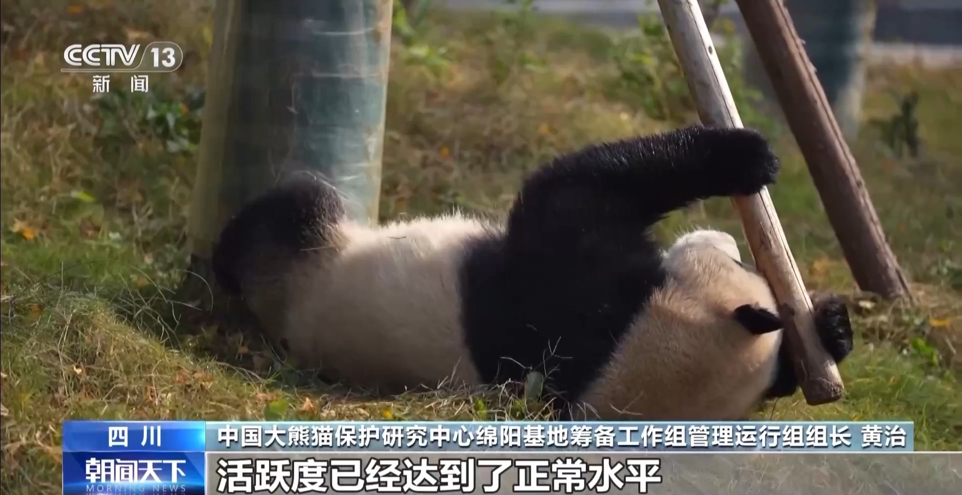 中国大熊猫保护研究中心绵阳基地筹备工作组管理运行组组长 黄治:现在绵阳基地已经入住了20只大熊猫,各个年龄阶段的都有,适应情况都非常好。刚来的时候有些个体比较紧张,食欲下降,现在都已经逐步恢复,活跃度达到正常水平。