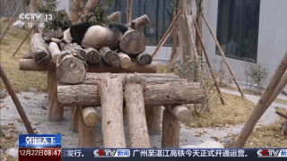 据了解,每个大熊猫的户外运动场馆都修建了一个攀爬架。攀爬架底座采用钢筋混凝土仿原木设计,主要是出于安全、结实、耐用的考虑。在上面铺设了一根根真实的原木,满足大熊猫亲近自然的需求。
