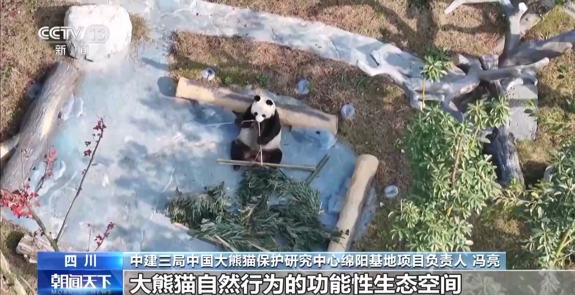 中建三局中国大熊猫保护研究中心绵阳基地项目负责人 冯亮:我们建造的不仅仅是建筑,而是可居住的生态,仅仅坚固耐用远远不够。我们的核心目标,是构建一个能主动激发大熊猫自然行为的功能性生态空间。因此团队在园区内复刻了自然界树木900余棵,铺设具有逼真形态肌理的岩石景观5400平方米。