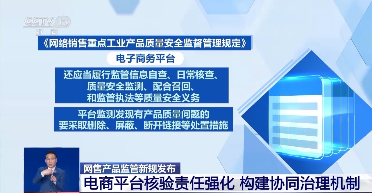 市场监管总局今天(22日)发布《网络销售重点工业产品质量安全监督管理规定》,自2026年12月1日起正式施行。这个规定和我们消费者的关系不小,具体了解↓