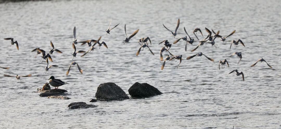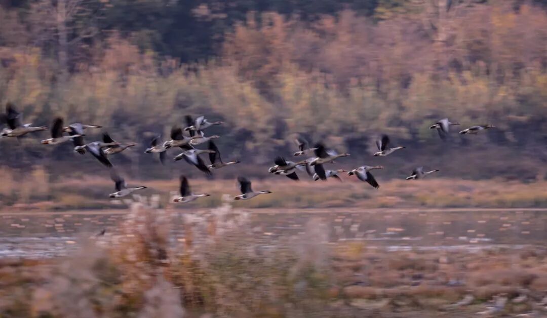 雁鸭群时而低空盘旋