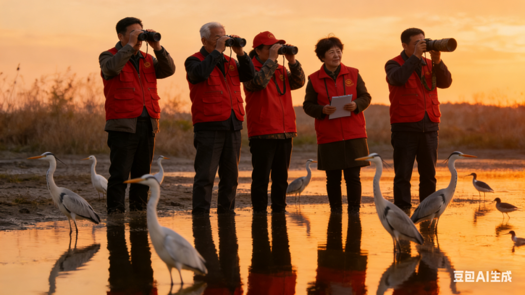 除了科技赋能,由林业工作者、退休干部、村民等组成的 “护鸟队”也常年坚守在湿地保护一线,用爱心守护着候鸟的安全。此外,湿地公园管理处还与检察院、公安、属地政府、水利、农业农村、林业等部门建立了联动机制,严厉打击非法猎捕、伤害候鸟的行为,为候鸟营造了安全、稳定的生存环境。