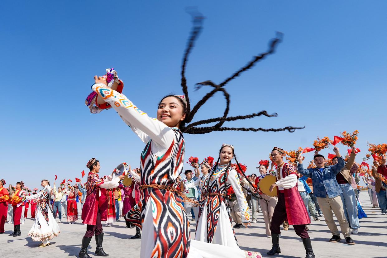 9月23日,群众载歌载舞,喜迎新疆维吾尔自治区成立70周年。