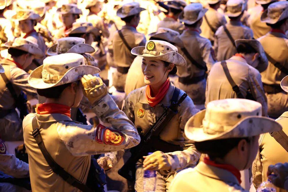 这是纪念大会开始前,受阅部队在整理着装。一直以来