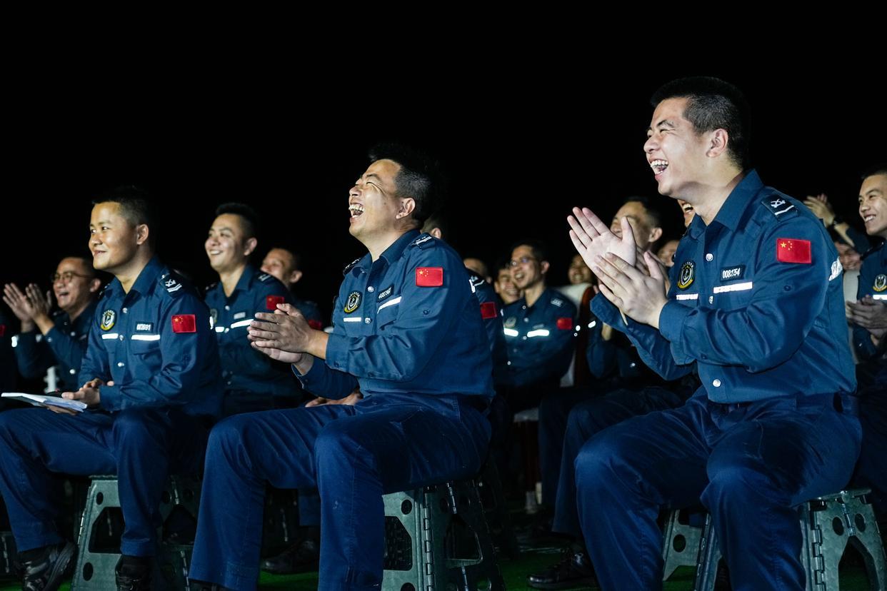 6月1日,正在南沙海域执勤的中国海警赤瓜舰执法员举行集体生日晚会。