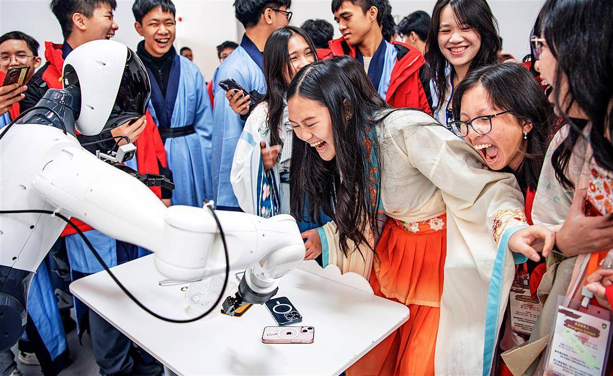 12月18日,来自印度尼西亚的学生在湖北人形机器人创新中心参观。这里正式投入运营后,每天来参观的游客接连不断。