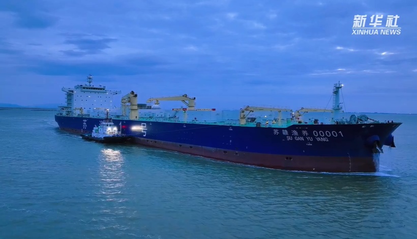 23日,全球首艘自航封闭式三文鱼养殖工船“苏海1号”在江苏连云港赣榆区投苗启用。“苏海1号”是一型集养殖、捕捞和加工高价值鱼种功能于一体的海上智能养殖装备,船长249.8米,养殖水体达8.3万立方米,在稳定运营后,该船可实现三文鱼年养殖量超8000吨。