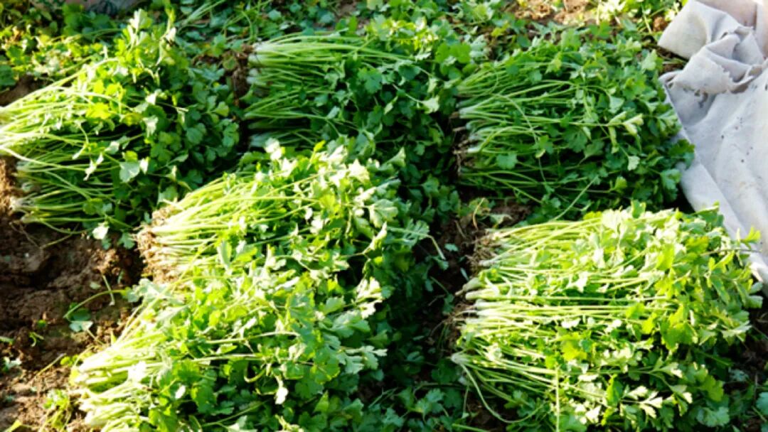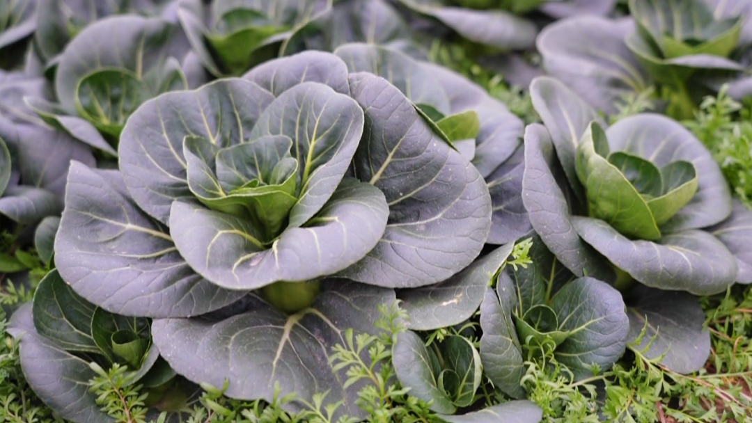 “苏州青”也叫矮脚青,个头不大,颜色深绿,叶子厚、纤维少,口感甜嫩。除了它,基地里的大蒜、香菜也因为品质好,持续走俏市场。