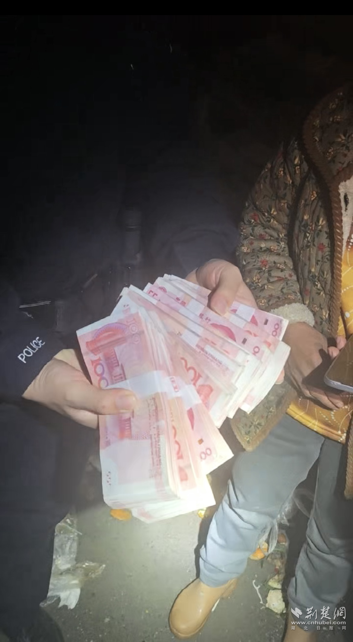 荆楚网(湖北日报网)讯(记者 白云 通讯员 谈小珂、汤文慧)“太感谢你们了,我真不知道说什么好!”12月21日晚8时15分,市民刘女士从民警陈操手中接过失而复得的10万元现金,激动不已。