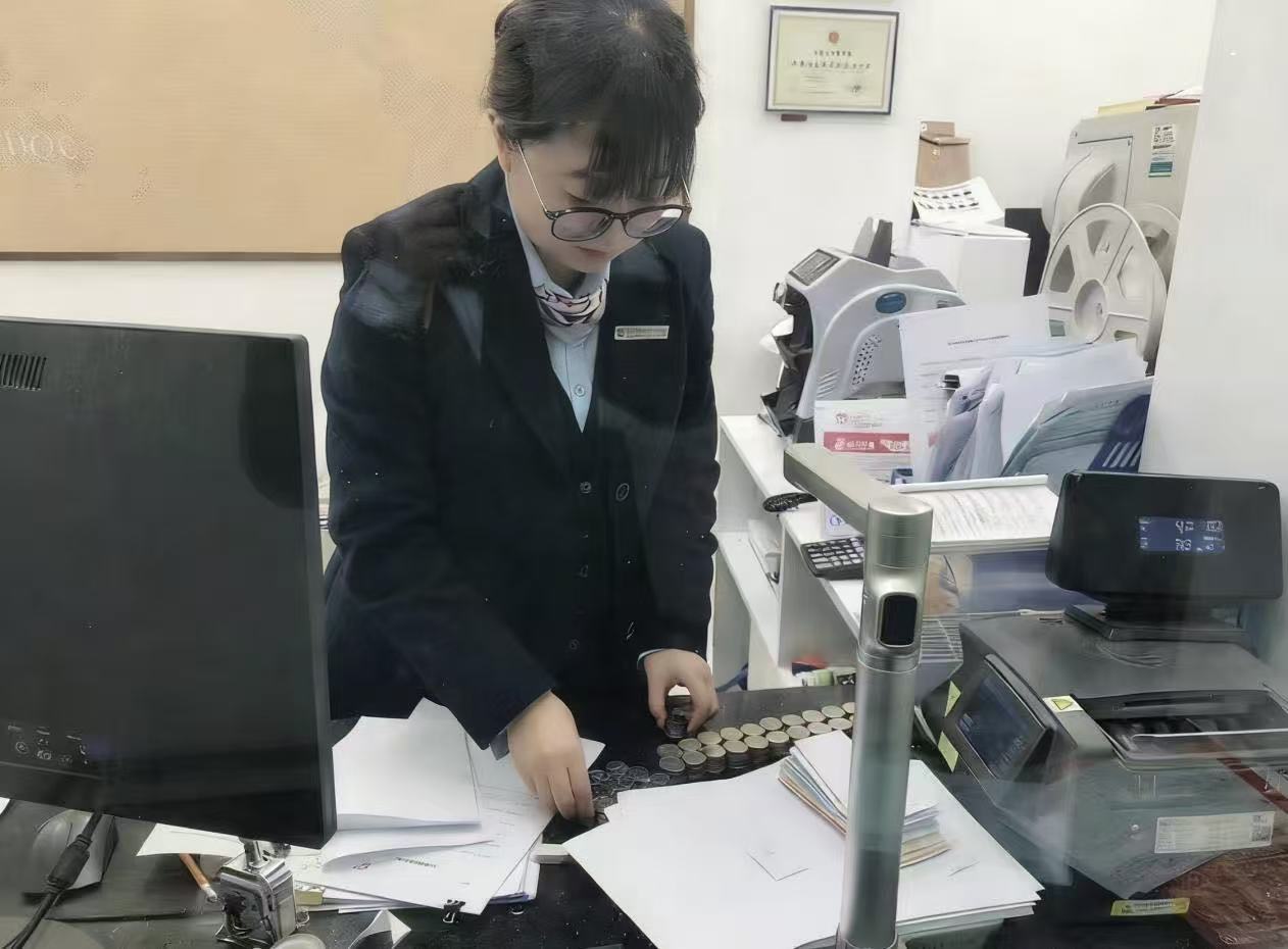 了解情况后,中行沙洋支行内控副行长立刻安排经验丰富的综合服务经理李经理对接。李经理先将纸币按面额分类、抚平清点,再把硬币逐一分拣、计数。在清点过程中,客户张先生多次表示“这些零钱整理起来太麻烦,辛苦你们了”,李经理却始终微笑回应,告知客户“这是我们应该做的,您的需求就是我们的服务方向”。经过近两个小时的细致操作,最终将杂乱的零钱精准清点完毕,为李先生兑换成了整额纸币,共计一千二百余元。