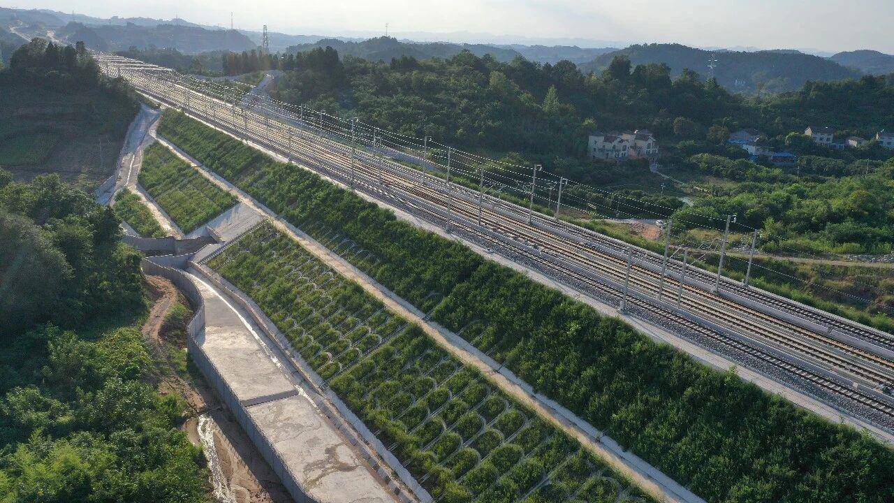 高铁疾驰而过,沿线满目葱郁、生机盎然,一幅兼具生态之美与人文底蕴的绿色画卷徐徐展开。