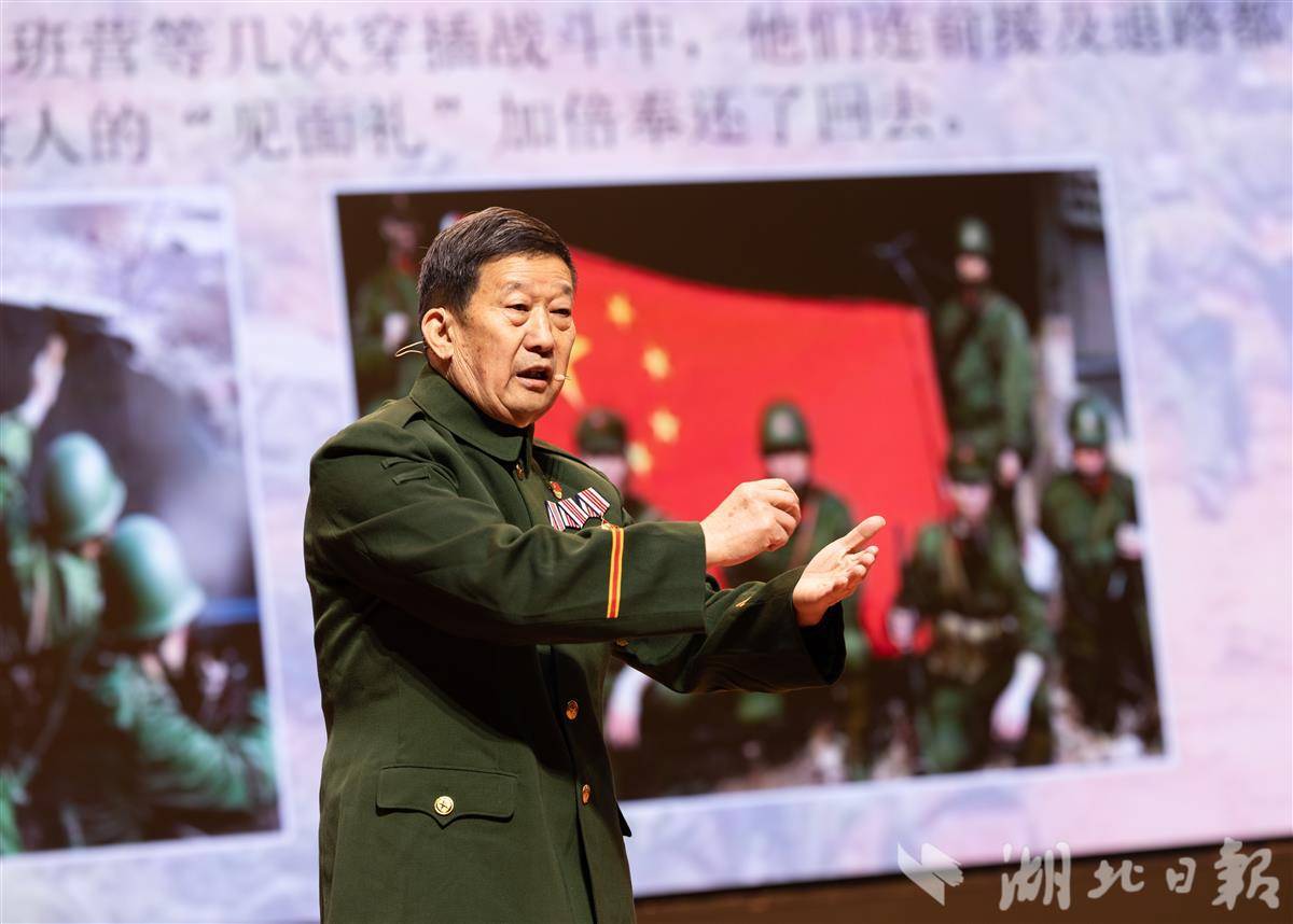 12月24日是长津湖战役胜利75周年纪念日,武汉理工大学近千名学生通过“听老兵故事、看红色展演、谈自身感悟”,深化对红色历史的理解,增强爱国情怀与责任担当。原武警湖北省总队副司令员刘耀来现场深情寄语青年学子:“少年强,则中国强!”(湖北日报全媒记者 薛婷 汤玮玮 摄)