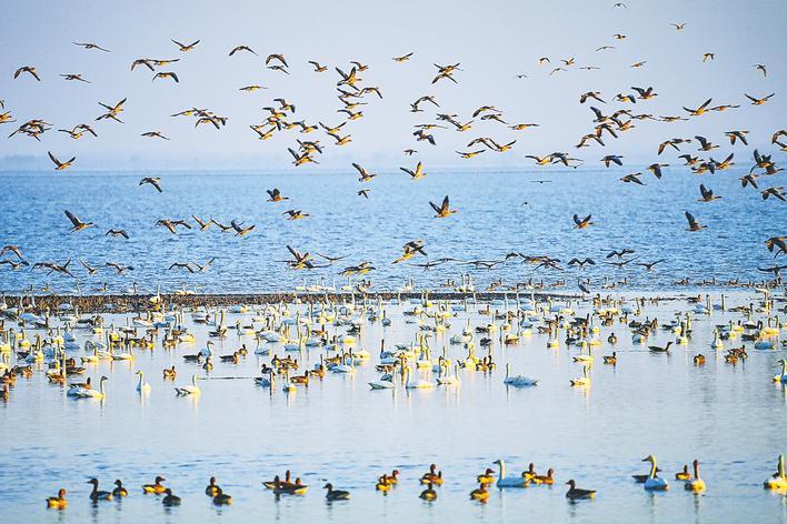 12月14日,龙感湖万鸟翔集,共绘生态画卷。 (湖北日报全媒记者 朱熙勇 极目新闻记者 王永胜 摄)