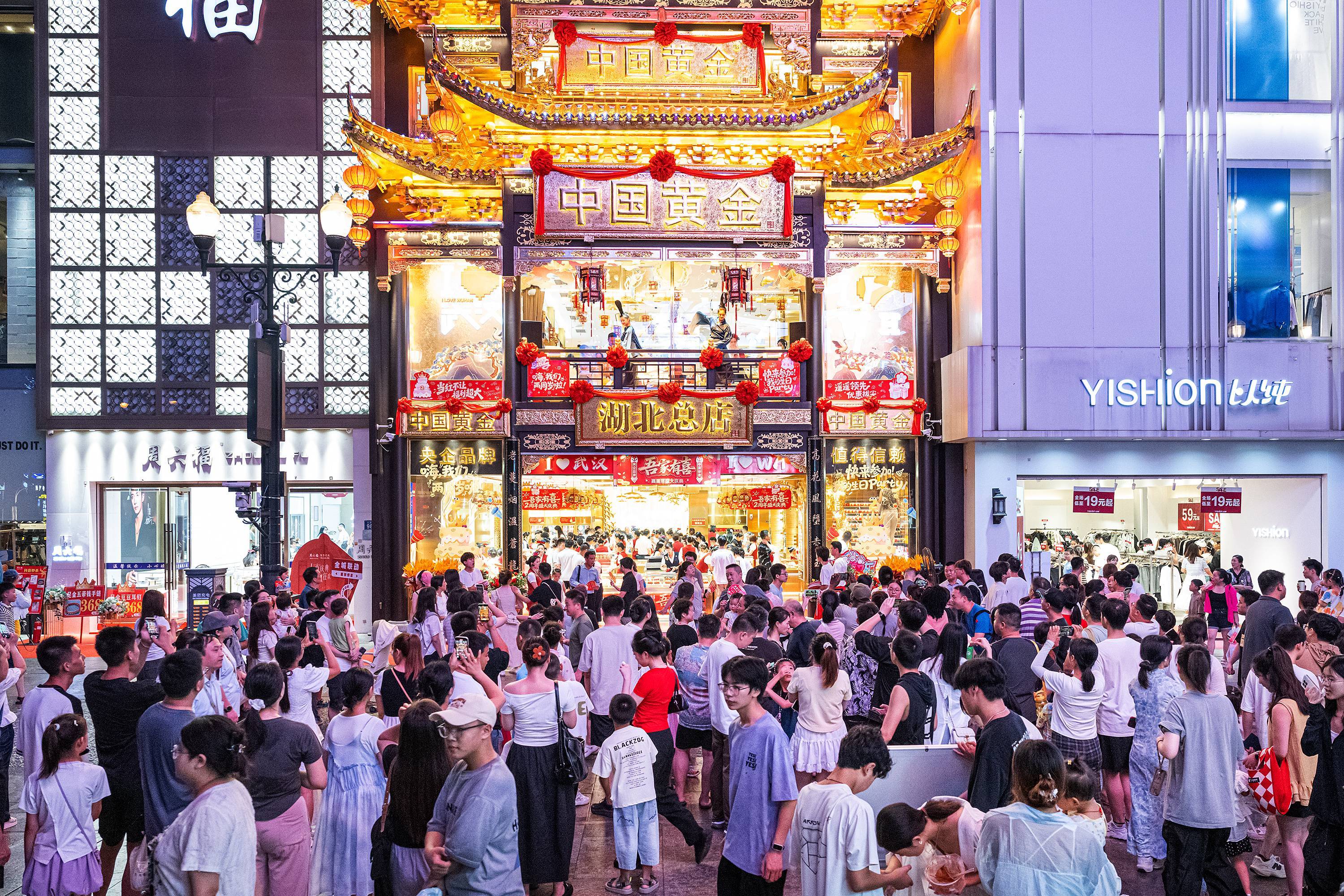 武汉江汉路步行街“夜经济”活力迸发,人流如潮。(湖北日报全媒记者 任勇 摄)