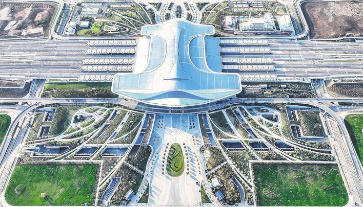 高铁荆门西站俯瞰。(荆门市委宣传部供图)