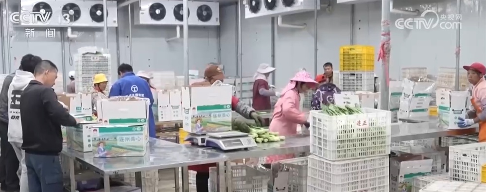与此同时,蔬菜交易同样繁忙。当下也是广东冬种蔬菜陆续开始收割大规模上市的时候,这段时间稳定的气候也为蔬菜的生产和运输提供了有利条件,南菜北运开始多了起来,目前这里四成多蔬菜是要运往北方的。记者在市场上了解到,比如海南的瓜豆类以及广东的菜心、芥蓝也成为北方市场的热销品种。