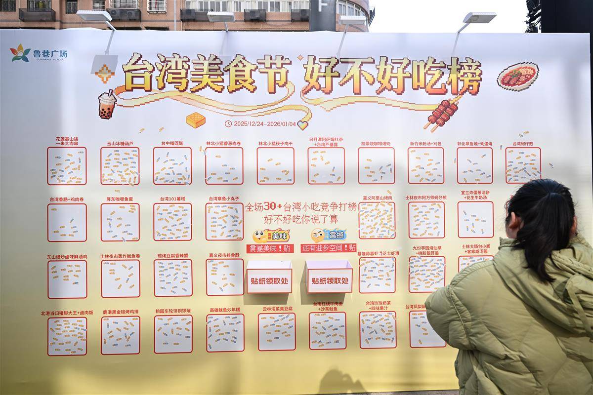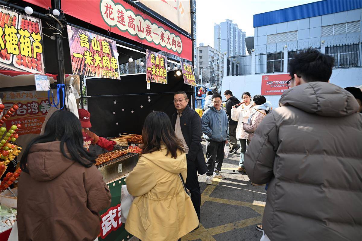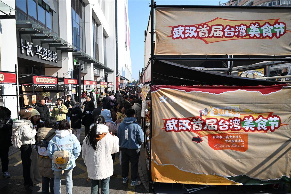 台南牛肉粉、卤肉饭、蚵仔煎、凤梨酥、罐罐茶……12月24日,武汉中商世界里(鲁巷广场)首届台湾美食节启幕,美食节以“两岸风味相融 非遗匠心传承”为主题,30余位台湾美食主理人首次组团来到武汉,40多道正宗台湾本地小吃亮相。武汉人这次终于在家门口尝到原汁原味的“台味”。美食节现场,食客一边品尝美食,一边和台湾摊主交流烹饪秘诀,还不忘向台胞推介武汉的美食和景点。据悉,美食节从2025年12月24日起持续到2026年1月4日。(湖北日报全媒记者 魏铼 通讯员 张璨龙 摄)