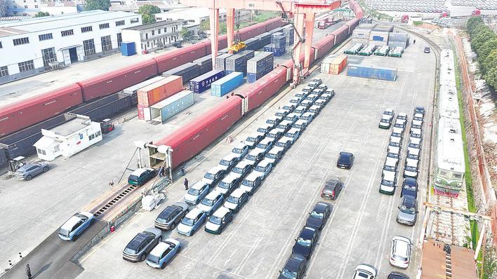 12月18日,在襄阳市刘岗货场,东风纳米01正有序装入货车,将通过铁路运达白俄罗斯。 (本报资料图片)