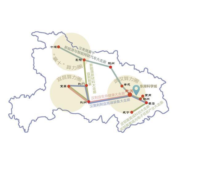 具体来说,东湖科学城以武汉光谷为核心,瞄准国家科技自立自强,聚焦基础研究、前沿技术突破,打造辐射全省的“创新策源地”;三大算力圈呼应国家“东数西算”工程,构建算力基础设施网络,武汉侧重高性能计算与人工智能,宜昌利用水电优势发展绿色算力,襄阳对接制造业数字化转型,形成差异化协同;六大走廊则以交通干线为轴,串联城市群产业链,推动产业从“点状集聚”向“带状联动”升级。