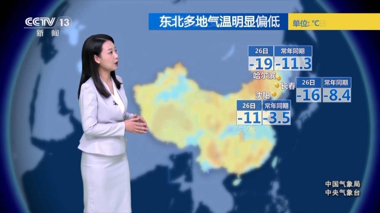 今天东北地区东部一带还将被冷空气控场,降温继续,气温也仍将保持这种低迷的状态。城市中像是哈尔滨、长春及沈阳的最高气温仍将明显偏低于常年同期,寒意十足。