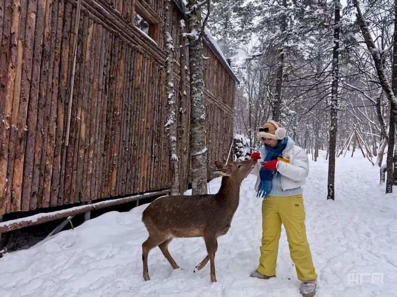 央广网延边12月25日消息(记者郭佳丽)进入新雪季以来,各地不断探索“冰雪+”多元新场景,持续释放冰雪魅力。12月23日,记者来到吉林延边和龙市老里克景区。景区已被皑皑白雪覆盖,游客们在鹿园争相与驯鹿、梅花鹿打卡留念。“伸手可及的雪地精灵”成了这片雪域的旅游新名片。