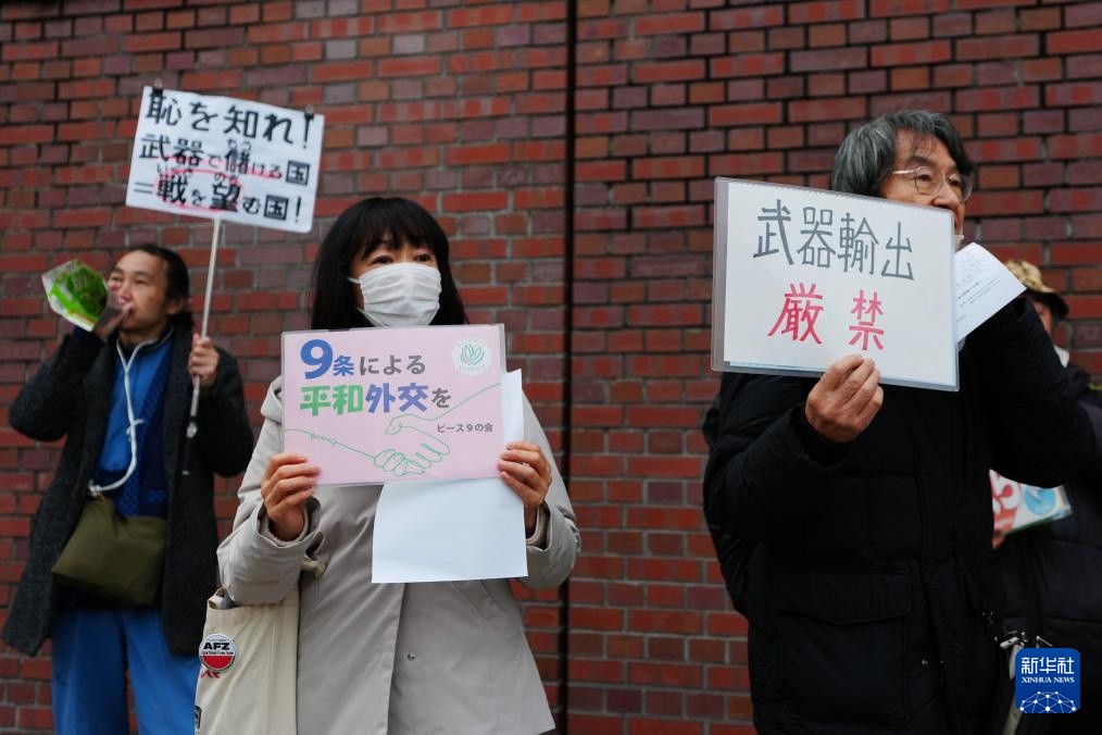 新华社东京12月25日电(记者陈泽安 杨智翔)针对日本执政联盟自民党与日本维新会拟取消对武器出口的5种类型限制、为武器出口大幅“松绑”,日本民众25日下午在位于东京的自民党总部前举行抗议集会。