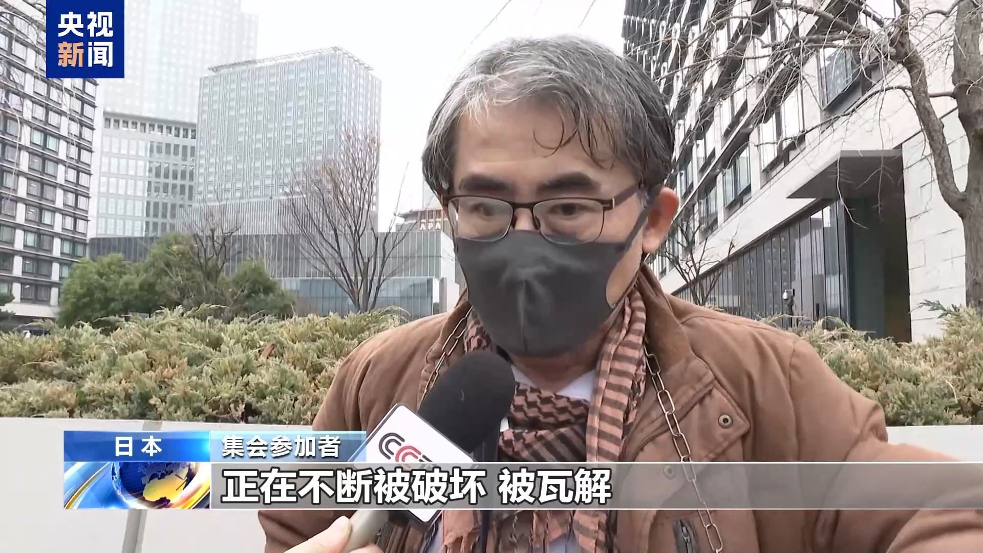 总台记者 何欣蕾:在现场,集会民众手中举着的标语牌上写着:“依据日本宪法第九条,实行和平外交政策。” 这里还写着:“严格禁止武器出口。” 还有的牌子上写着:“不要成为贩卖武器的商人。”大家以这样的方式,表达了对日本近期显露出扩军野心的担忧与不满。
