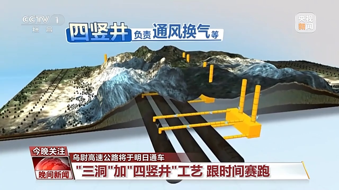 “三洞”就好比在天山肚子里平行插了三根长长的吸管,“四竖井”就是在吸管旁建了四组辅助通道,负责通风换气等。“三洞”中的左、右两个主洞将来是车辆南北通行的主干道,中导洞则是具有服务功能的隧道。