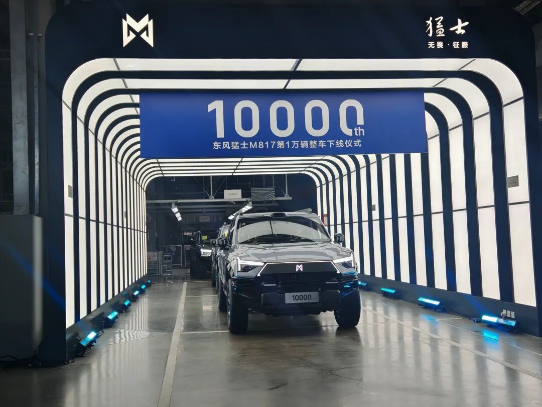 当天,“万分信赖 百万跨越——东风猛士M817第10000辆整车下线仪式暨东风汽车2025年度新能源100万辆销量达成活动”举行。猛士M817“从1到10000”的跨越,与东风汽车新能源年度销量破百万辆大关在同一节点交会,成为东风汽车“转型升级三年行动”坚定推进的集中呈现。这是东风汽车新的里程碑,也是武汉汽车工业发展史上的重要时刻。