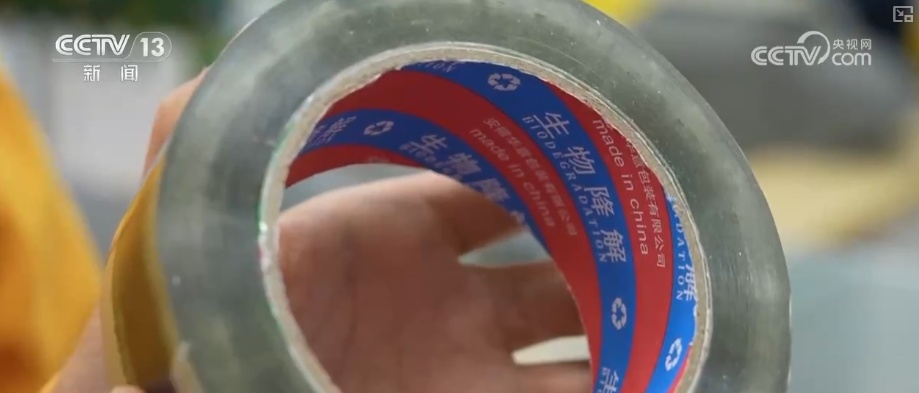 在快递的箱子上会常用到的胶带,这里所提供的胶带也都是可降解的胶带。在箱子上也会有一些绿色环保的元素,比如这里提供的免胶箱,在寄送快递的时候只需要贴上这样的一张启封贴,就不用再使用胶带进行包装。据了解,这里提供的纸箱是像这样的3层瓦楞纸箱,相比于传统的5层瓦楞纸箱更加绿色环保。
