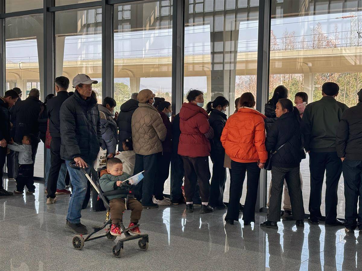 车站放开了候车大厅入口,不候车、不送客也可以进入。人们走进开着暖气、热烘烘、宽敞明亮的候车室,开心地合影留念。不少人站在玻璃墙内,看着站台和轨道,等候第一趟高铁到来。