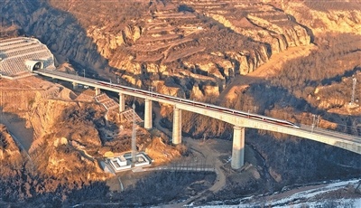 12月26日,一列复兴号动车组列车驶过西延高铁洛川—富县段。本报记者 雷声摄
