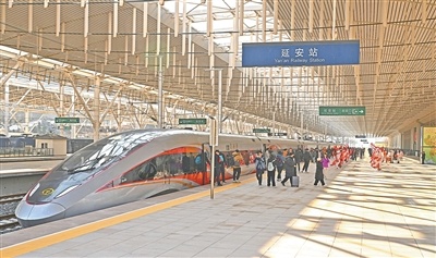 12月26日,西延高铁开通运营首日,首批乘客抵达延安站。本报记者 雷声摄