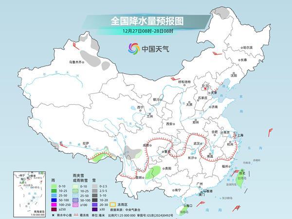 预计30日夜间开始,随着暖湿气流增强,西藏东部、四川、贵州、重庆、陕西南部、湖北西部等地降水又会发展增多。之后,水汽继续向东、向北输送,黄河以南地区将出现一轮“跨年”降水。目前来看这轮降水范围广,但强度不大,多是小到中雨雪量级。公众需密切关注临近预报,做好相关防范措施。
