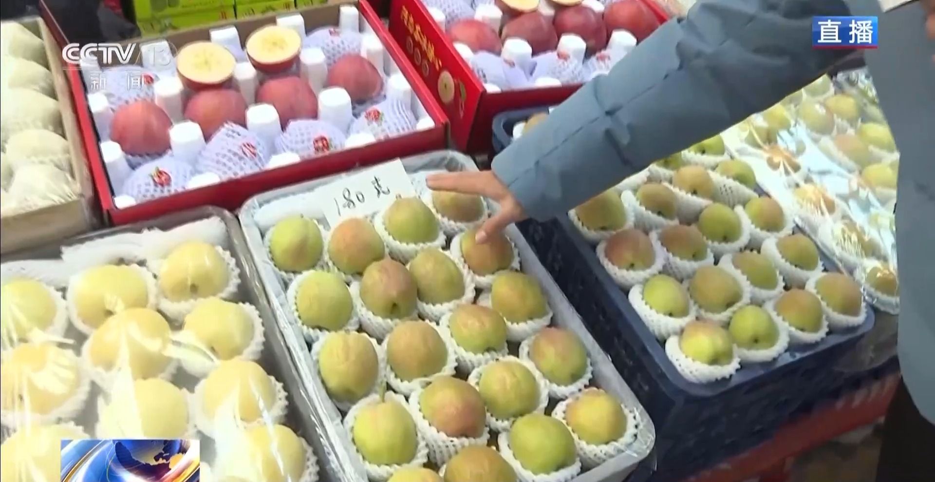 摊位老板已经把它们摆在了最显眼的位置,既有单果重达180克的饱满大果,也有120克左右的精致小果,顾客可以按照自己的需求选购不同规格的香梨。