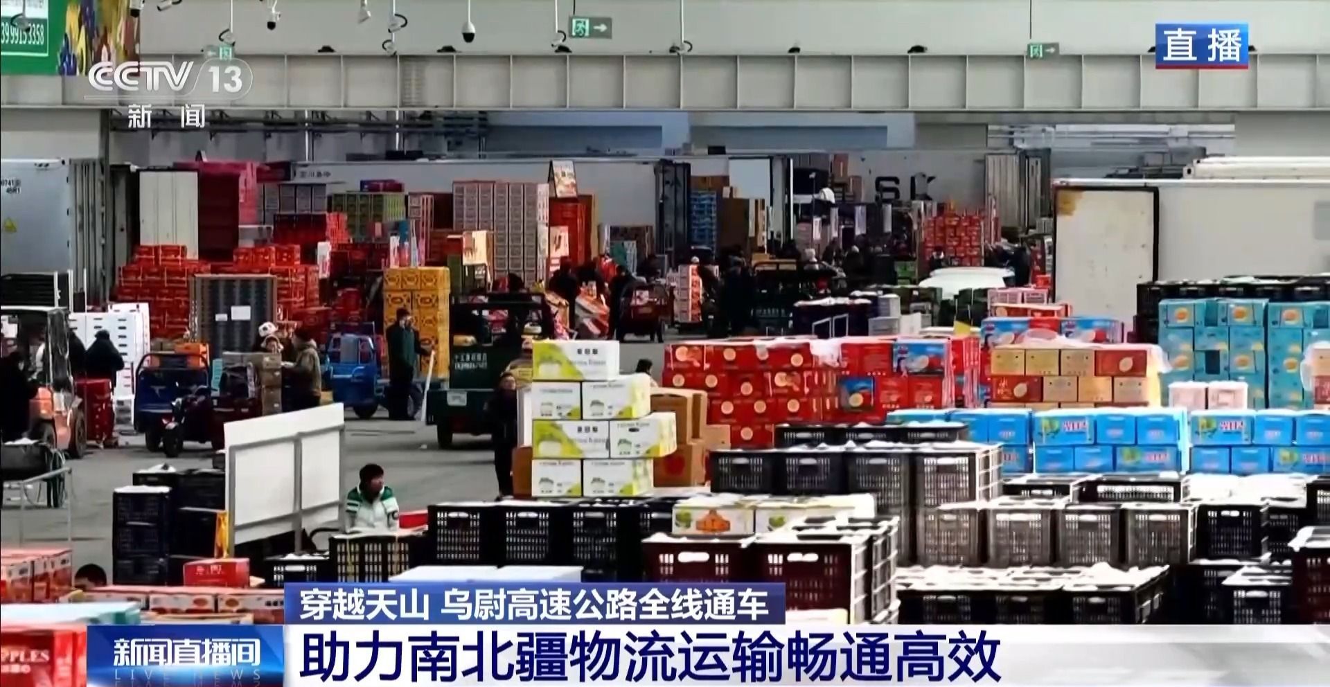 总台记者 卜鹏:乌鲁木齐市的九鼎农产品批发交易市场,是新疆最大的农产品批发交易市场,目前整个市场有2000多个商铺和摊位,每年的交易量可以超过200万吨。这个市场距离乌尉高速公路路线起点位置大概有20公里。