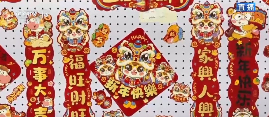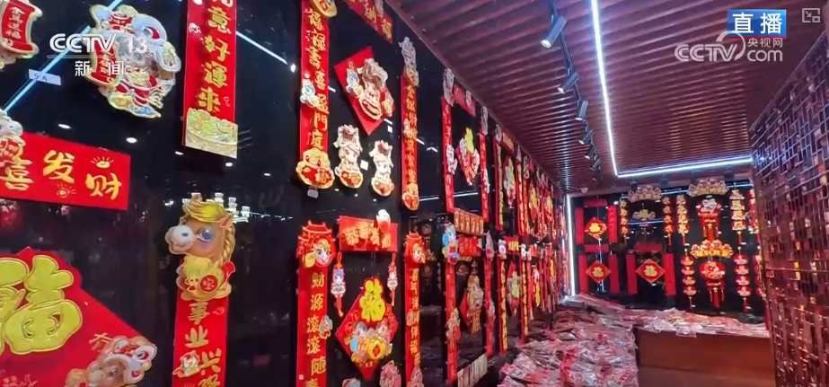 这张福字年画是记者在义乌小商品城的喜庆用品专区“抢”到的。为什么说“抢”?因为很多热门款式早就卖空了。义乌一直被叫做节庆用品的“风向标”,2025年流行什么、什么好卖,到这儿转一圈心里就有数了。