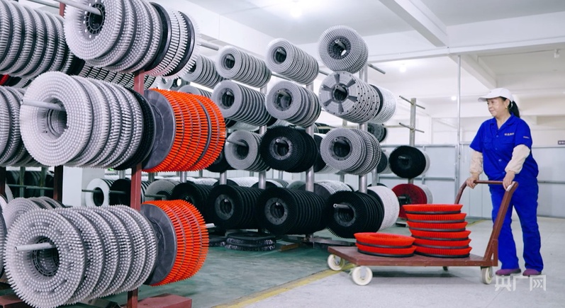 源潭镇制刷工人正在对产品进行规整收纳(央广网记者 刘畅司晨 摄)