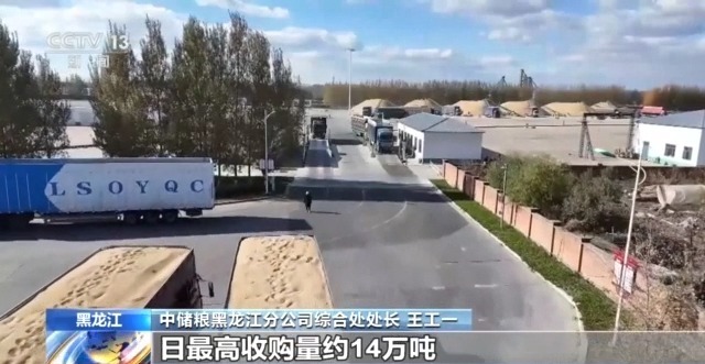 中储粮黑龙江分公司综合处处长 王工一:通过“挂图作战”可视化系统进行统筹调度,对仓容、库点等信息进行可视化动态管控,实现从资源的分散管理到精准调配。截至目前,中储粮集团黑龙江分公司已启动83个最低收购价稻谷收购库点,日最高收购量约14万吨。